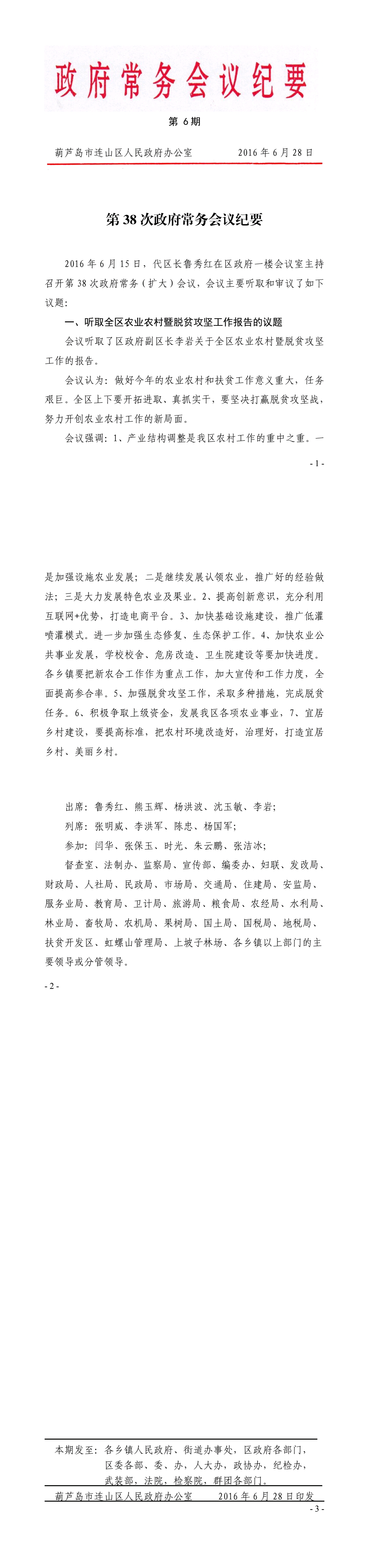 葫芦岛市连山区第38次政府常务会议纪要