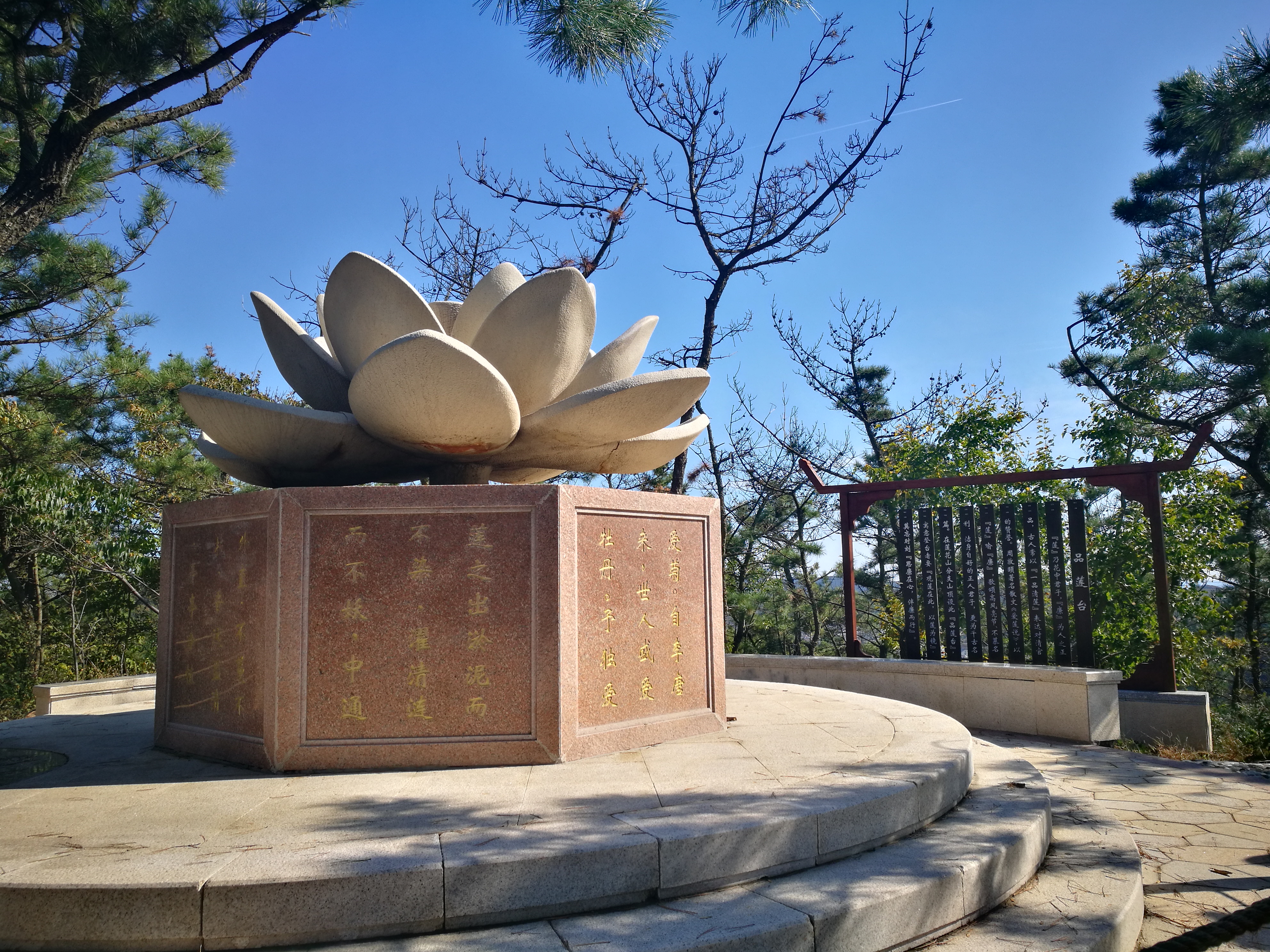 公园入口就有一面醒目的“百廉墙”,一个大大的扇形,白钢镂刻的大字“廉”居于中心,四周分布着100个字体、字形各不相同“廉”字,这是从全区各行各业的典型代表人物征集来的,凸显着公园的廉政文化主题。拾级而上,道路两旁造型各异的石刻上是由西岗区的中国书法家协会会员撰写的不同字体的古今名言警句。这段路被命名为“笃行路”,引导、激励全区广大党员干部踏踏实实、坚持不懈地努力工作。此外,公园内还建有清官牌、清风亭、廉语廊等廉政文化景观,特别是在公园的最高处修建的品莲台,台上建有一座石刻的莲花雕塑,在传承“莲花山”名字由来的同时,以“莲”喻“廉”,又间接突出了廉政文化主题。将廉政文化、传统文化、家庭文化有机融合,打造本土特色的“勤廉”文化品牌,潜移默化地将“赏莲育高洁品质,颂廉扬清风正气”的廉政文化精髓植入民心。