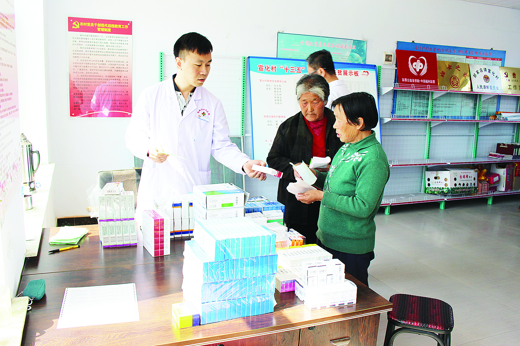 带着村民的重托,扛起沉甸甸的责任,驻村工作队投入到了紧张的工作,在村子里租了一所民房,长年吃住在村里。找到“贫根”,才能对症下药。经过调查了解,宣化村村民基本以传统种植业和养殖业为生,人多地少,面朝黄土背朝天,忙活一年手头还是没钱。日子紧绷,有病就舍不得治,小病托成大病,这里15%的村民需要常年吃药,这更加重了贫困。