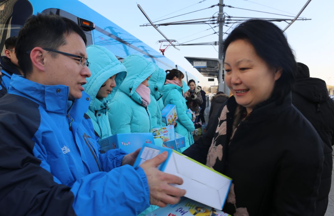 在有轨电车21世纪大厦站,市、区两级工会领导与现场工作人员亲切交谈,详细询问了日常运营情况及春节工作安排,并为他们爱岗敬业的工作态度和勤劳务实的工作作风点赞。感谢他们用自己的实际行动,为广大市民的节日出行提供了舒适温馨的乘车服务。