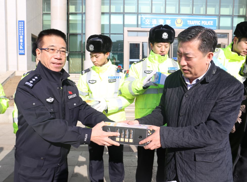 随后,市、区两级工会领导一行又走进浑南区交警大队,为坚守在一线的交警同志们送去了电暖宝、保温盒、饭盒、手套等慰问品,充分肯定了他们为维护道路交通安全、有序、畅通所作出的贡献。希望广大交警能够做好保暖措施,注意安全,与家人共同度过一个美好的新春佳节。