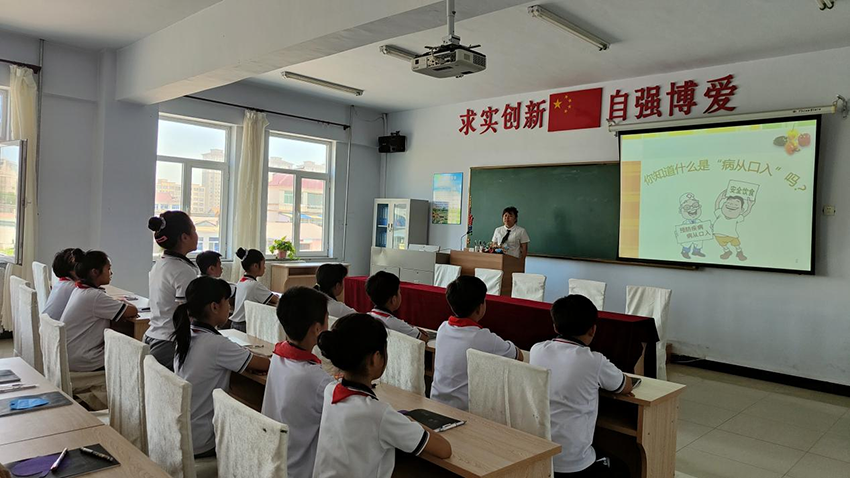 校园内的大屏幕上每天还会滚动播出食品安全科普知识,全方位营造校园食品安全氛围。
