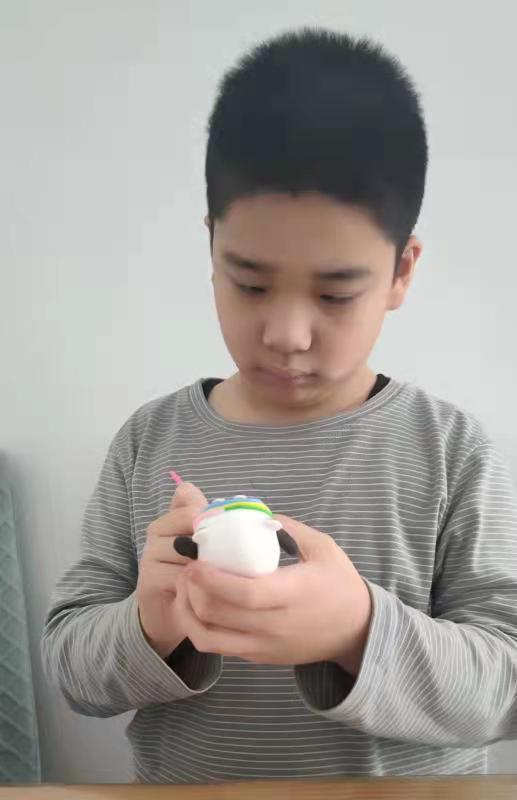 四年二班赵子翊同学说:“冰墩墩萌化了我的心,这个假期我用超轻粘土做了一个手工‘冰墩墩’,祝愿北京冬奥会能圆满成功!”