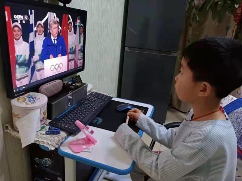 2月4日,学校全体师生同一时间在不同的地点都收看了北京冬奥会的开幕式,瞬间班级微信群刷爆,大家都兴奋地议论着精彩的一幕幕,创意与科技的融合,艺术与体育的共生,让我们深刻体会到了祖国的美好与力量,繁荣与强大。后续几天同学们都在关注冬奥各项赛事,短道速滑接力夺首金,再掀热议,任子威、谷爱凌接连夺金,让孩子们更加了解冰雪运动,热爱体育锻炼,许多孩子走出家门来到室外开展冰雪运动。