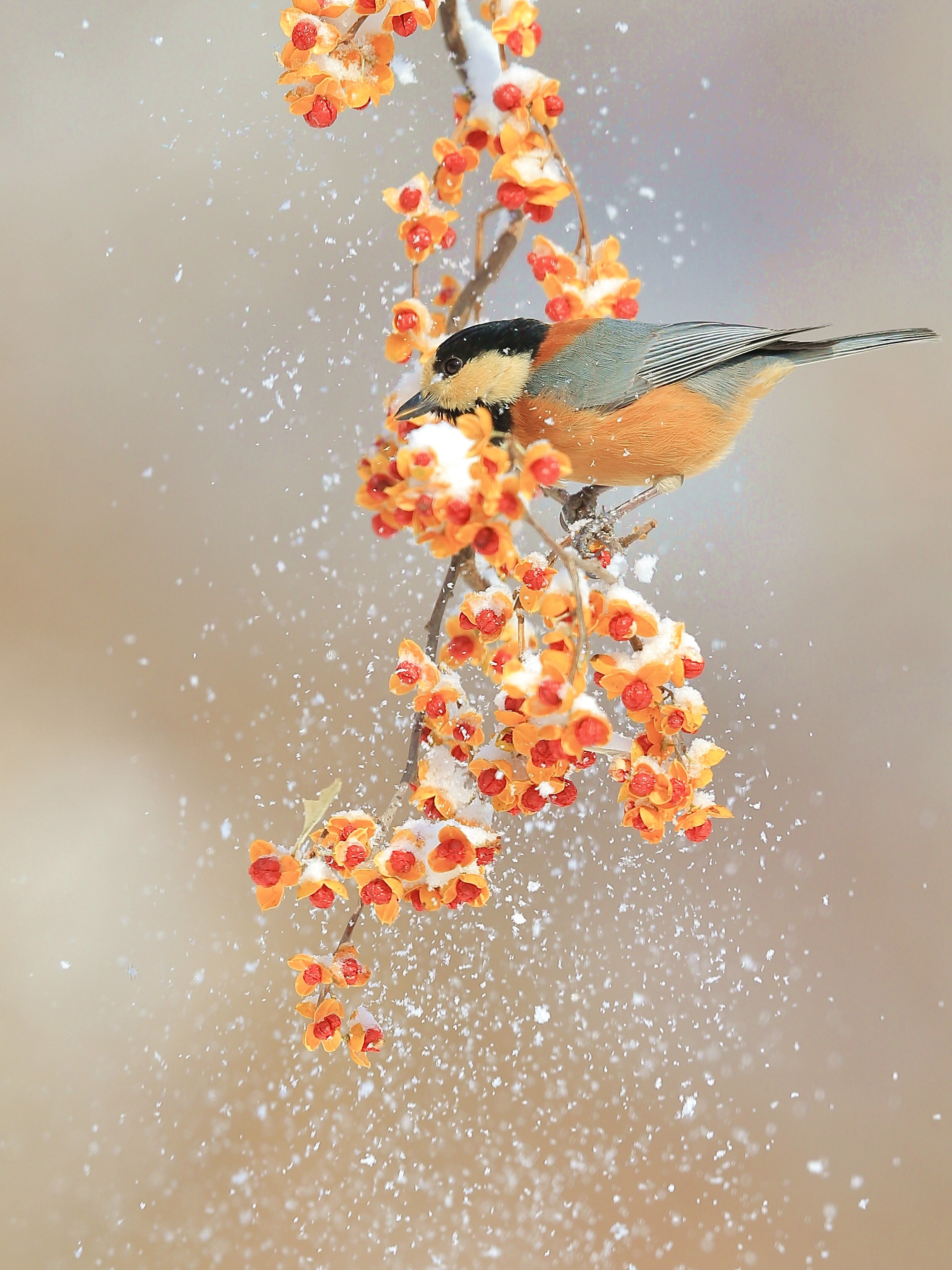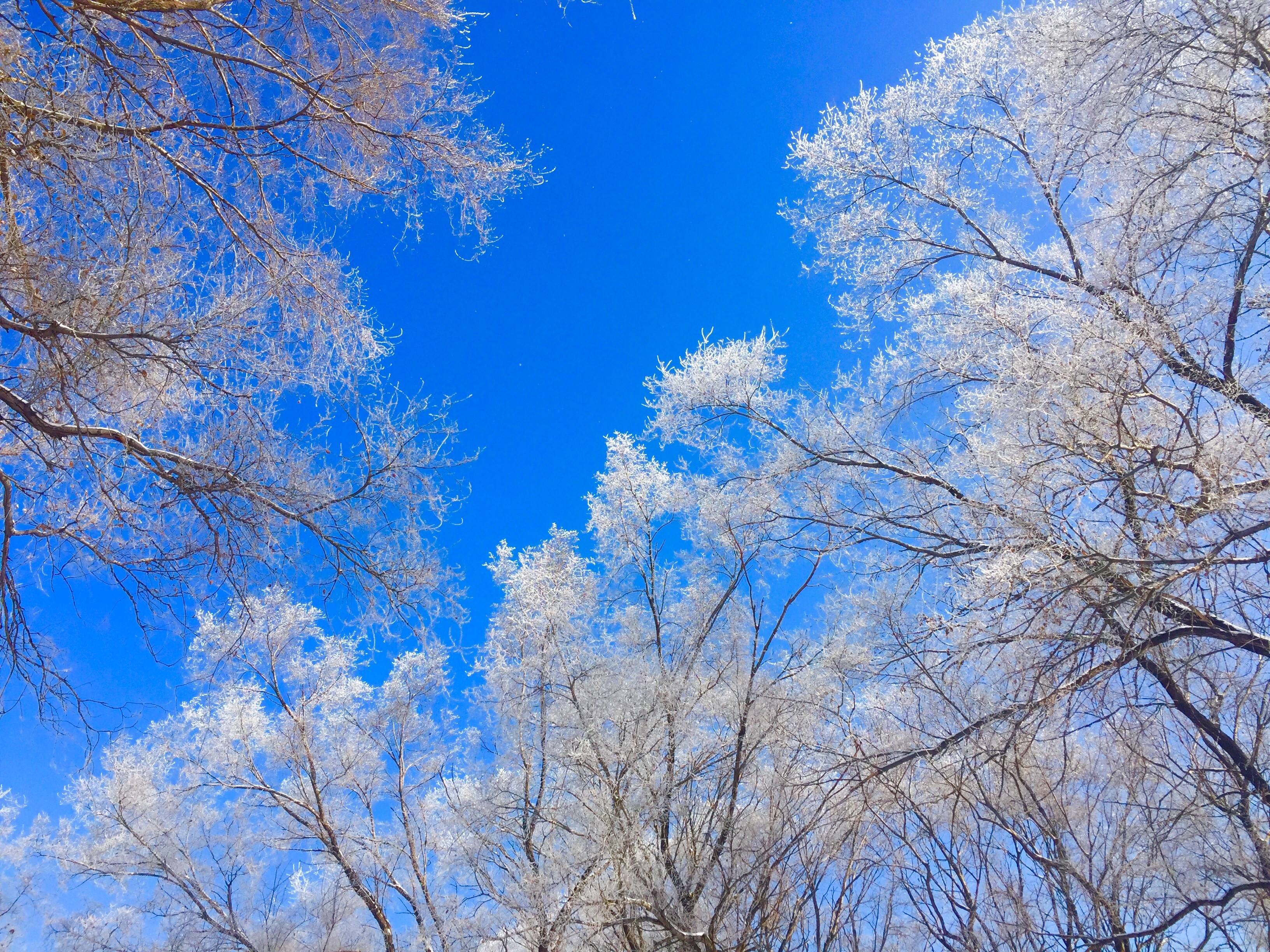 冬日:雾凇沆砀,天与云与山与水,上下一白。