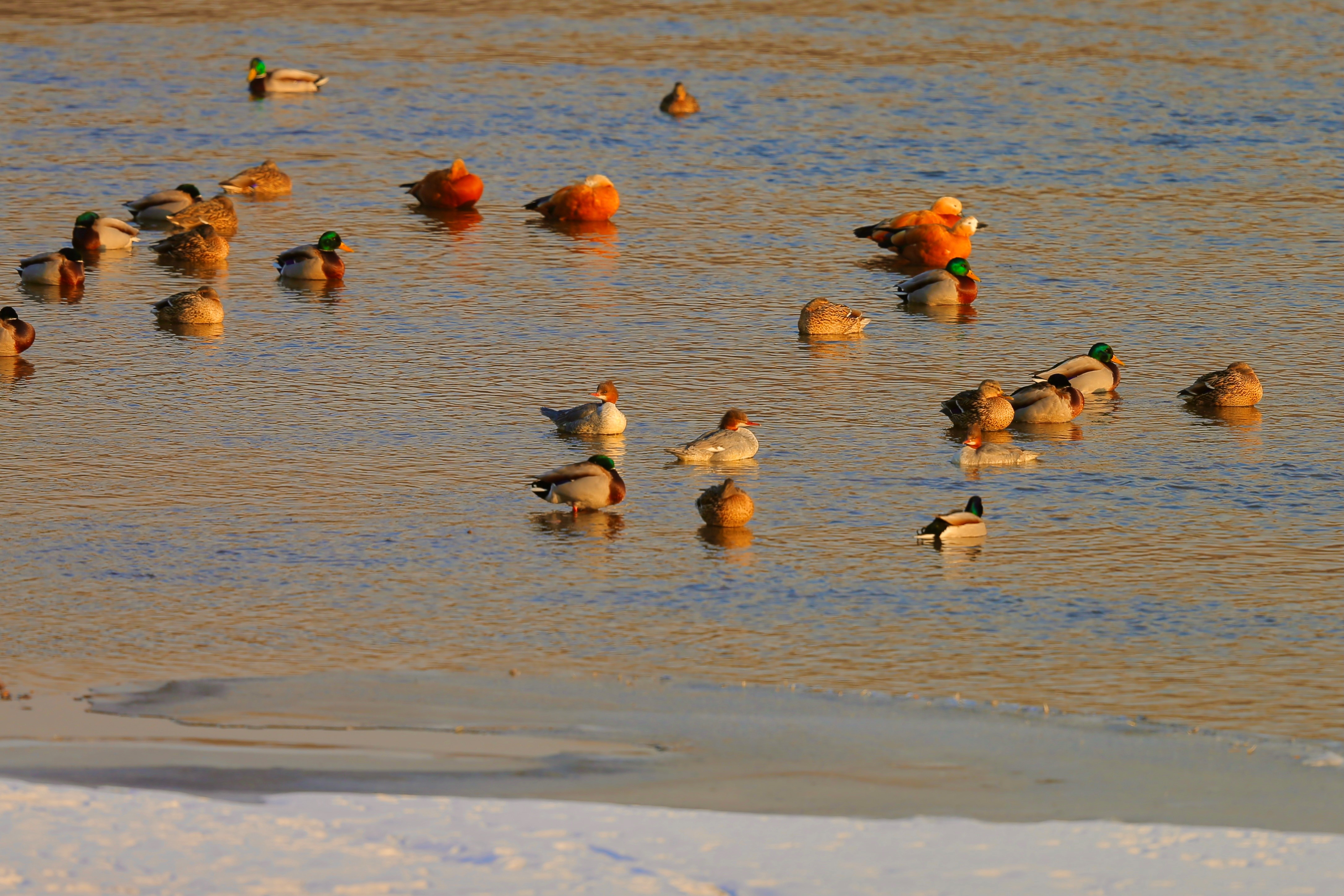 冰消融,水淙淙。而提前预知这一切的不仅天气预报,更有一群可爱的赤麻鸭。23日下午,摄影爱好者邓宪忠用镜头记录下位于沈阳铁西区翟家街道后谟村浑河闸口附近的“鸳鸯戏水”图,这正映了那句古诗“竹外桃花三两枝,春江水暖鸭先知”,想必诗人苏轼也是看着这样的美景后有感而发的吧。