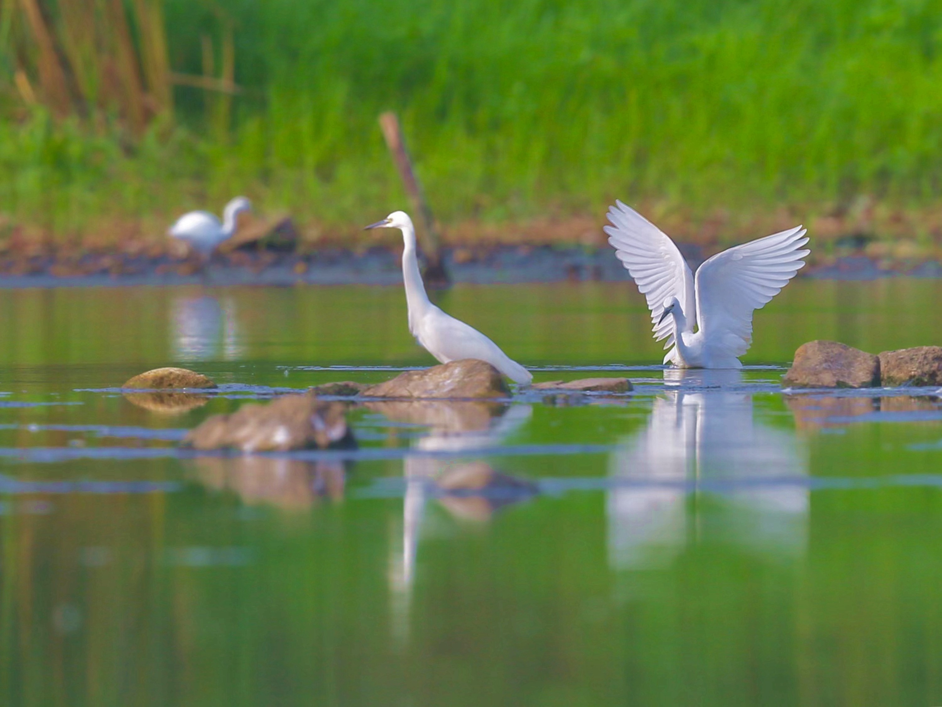 夏日:绿色浓影夏日长,天鹅溪水入池塘。
