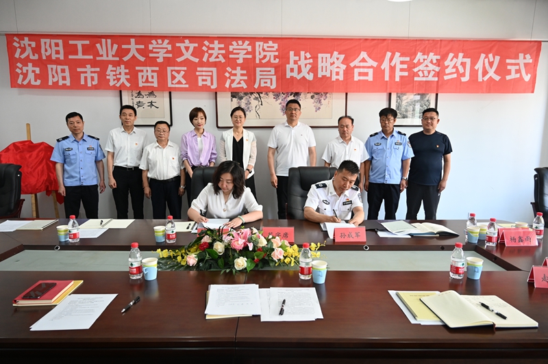 为深入学习阐释习近平法治思想,共享法律资源,深化法治社会建设,7月7日,沈阳市铁西区司法局与沈阳工业大学文法学院签署共建协议,双方约定共同建设实践基地,扎实推动合作交流、共促共建。