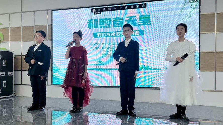 启动仪式现场,伴随着轻柔的音乐,来自铁西区的少年读者们组成“书香宣讲团”,他们手握精心挑选的经典读物,用清脆的童声演绎经典片段,铿锵的音韵激荡着新时代青少年的文化自信,每一个音调的起伏都像是在与经典进行一场跨越时空的对话,引领着现场观众沉浸在文学的浩瀚星河中。“《平凡的世界》中的孙少平教会我,真正的英雄主义是看清生活本质后依然热爱生活。”当铁西区肇工街第一小学的华正宇满怀激情地分享自己的阅读感悟时,台下响起了热烈的掌声,也点燃了现场观众的阅读热情,奏响了以“相约春天,共植希望”为精神内核的春日书香交响曲。